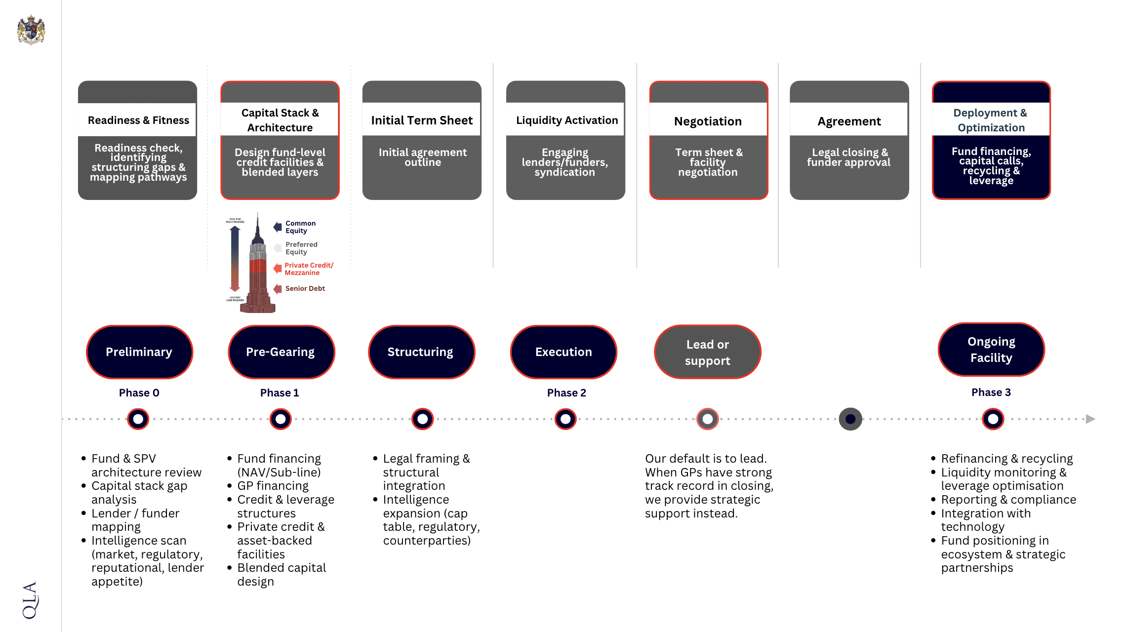 We treat fund financing & stacking as an engineered system that make capital move intelligently. Every structure, lender relationship, and liquidity mechanism is designed with precision to increase velocity, reduce friction, preserve control, and credibility.
